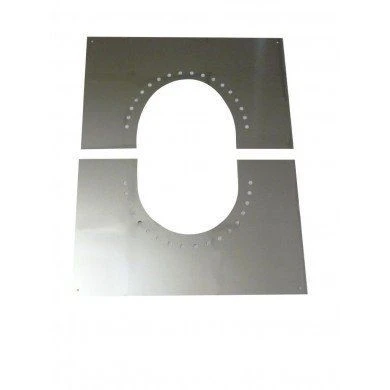 Diese zweiteilig oval ausgeschnittenen Blendbleche dienen zur unteren Verblendung der ausgeschnittenen Schalung bei Durchdringung von Dachflächen. Es stehen 2 Modelle mit 0-30 oder 31-45° zur Verfügung. Durch den ovalen Schnitt kann der Durchbruch vollständig abgedeckt werden. Dieses Produkt ist das hinterlüftete Modell. Es verringert sich dann der Abstand zu brennbaren Materialien von 200 auf 100 mm.