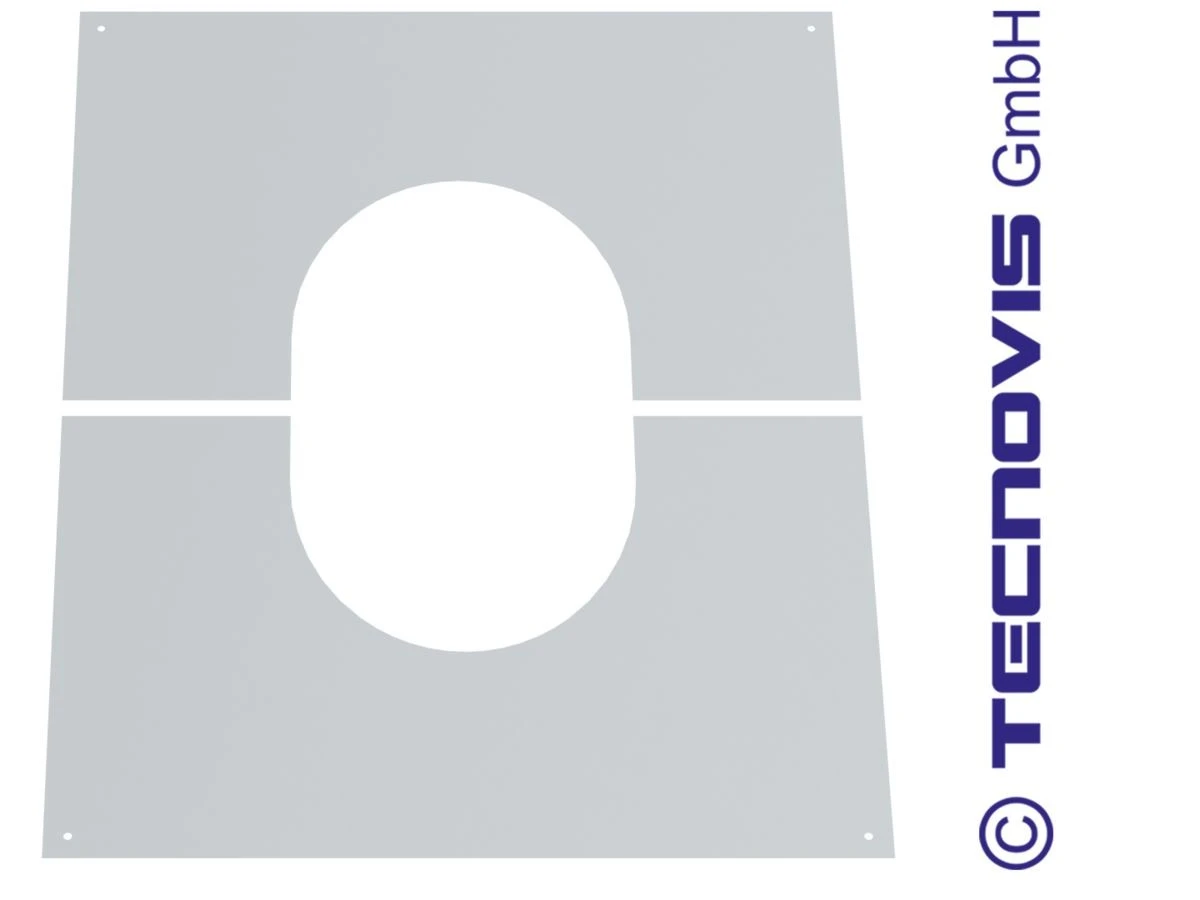 Diese zweiteilig oval ausgeschnittenen Blendbleche dienen zur unteren Verblendung der ausgeschnittenen Schalung bei Durchdringung von Dachflächen. Es stehen 2 Modelle mit 0-30 oder 31-45° zur Verfügung. Durch den ovalen Schnitt kann der Durchbruch vollständig abgedeckt werden.