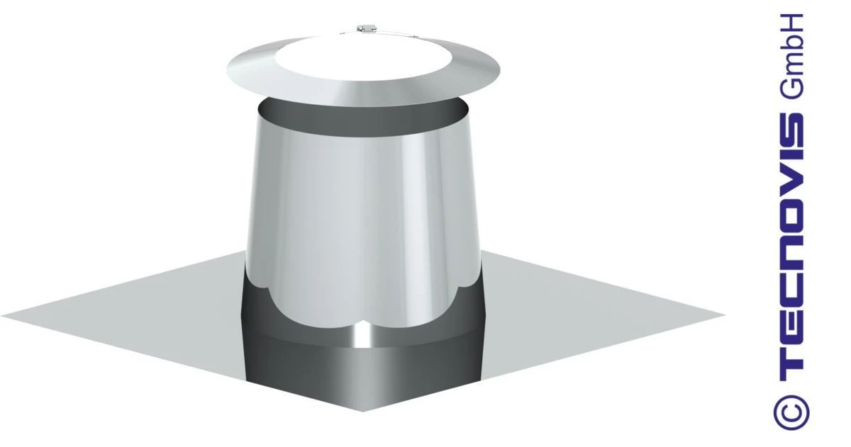 Flachdachdurchführungen bestehen aus einem kleinen Konus und angeschweißter Edelstahlplatte. Sie werden zur Einschweißung in mit Bitumen gedeckten Dächern verwendet.
