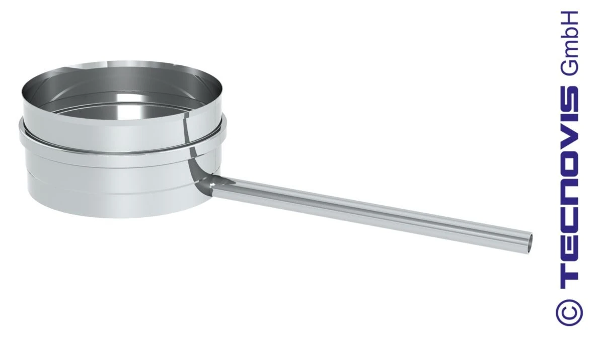 Kondensatschale V4A mit Ablaufrohr 250 mm lang &Verschlussschraube Werkstoff 1.4404 säurebeständig, Edelstahl matt Höhe: 10 cm.