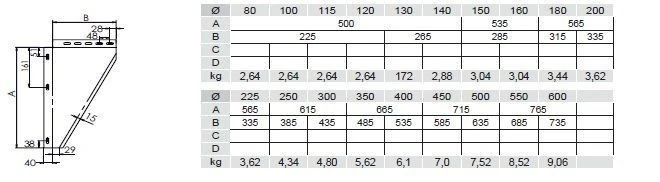 Das Konsolblech ist zur unteren Befestigung des Schornsteins an der Wand gedacht. Es ist ein lichter Wandabstand 5 bis zu 15 cm einstellbar.