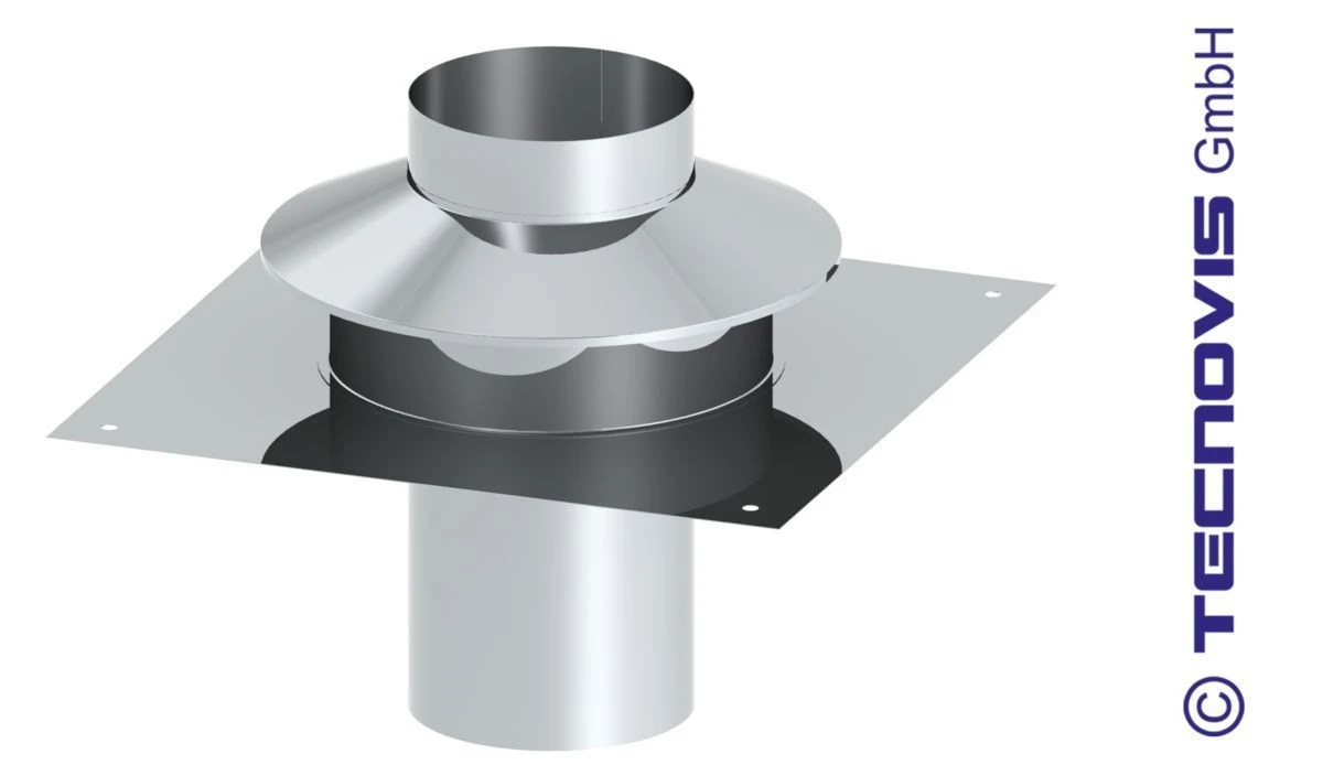 Edelstahl matt Kantenlänge Platte je nach DN:Ø 80-100 = 330 mm,Ø 115-160 = 400 mm,Ø 180-200 = 425 mm,Ø 225 = 450 mm,Ø 250 = 500 mm,Ø 300 = 540 mm.