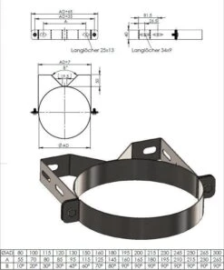 Wandhalter aus Edelstahl 5 – 9 cm. Für Edelstahlschornsteine 130 mm innen- und 180 mm Außenmaß.