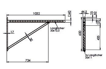 Stabile Wandkonsole aus K-Profilen. Diese Wandkonsolen werden bei größeren Wandabständen eingesetzt.