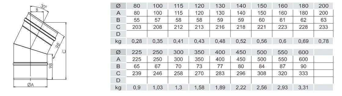 Name Winkel 30º star Artikelnummer EW-618-130 Einstecktiefe (cm) 6 cm Feuerungsart / Brennstoffe öl, Gas, Holz, Koks, Torf, Kohle Material Edelstahl, 1.4404 (316L). 0,6 mm Wandstärke (mm) 0,6 mm CE – Zertifizierung 1856-1 T600 – N1 – D – V2 – L50060 – G100 Lieferzeit (Werktage) 3-5 Transportkosten 1,2,3 Teile: € 24. 4 Teile oder mehr: € 35,00 Passt für Durchmesser innen (mm) 130